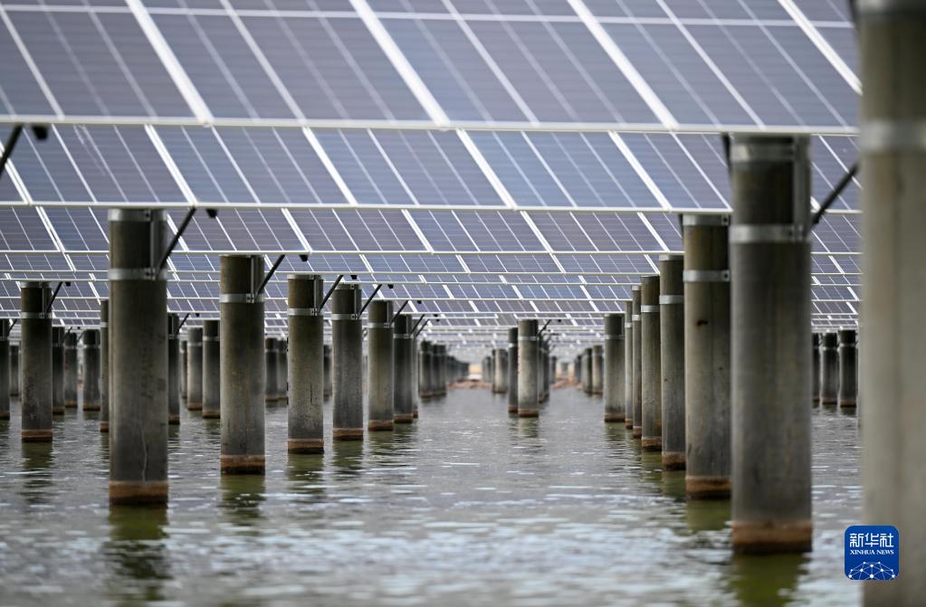 這是7月1日拍攝的龍源天津海晶鹽光互補項目一景。