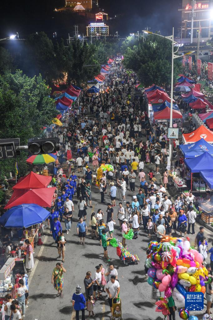 7月1日,人們在貴州“村超”足球賽場旁的集市游玩。