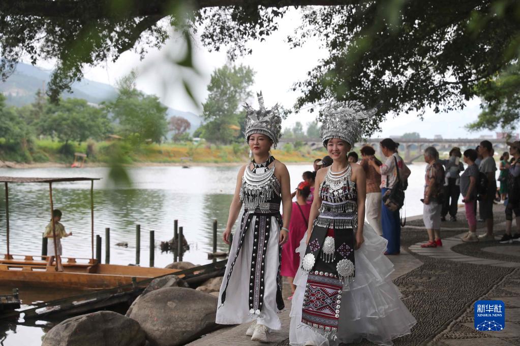 7月2日,游客在貴州省黔東南苗族侗族自治州榕江縣古州鎮三寶侗寨古榕群景區游玩。