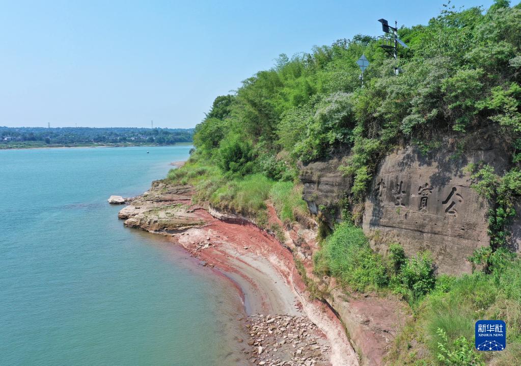 這是6月27日拍攝的神臂城周邊巖壁上的題刻(無人機照片)?!肮珜嵣摇蹦ρ骂}刻,夏天漲水的時候,字被洪水淹沒,退水的時候,字又露出來,至今保存比較完好。
