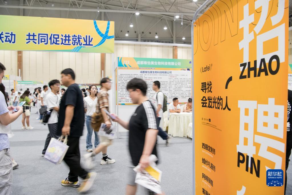 這是7月2日在成都世紀城新國際會展中心1號館拍攝的招聘會現場。
