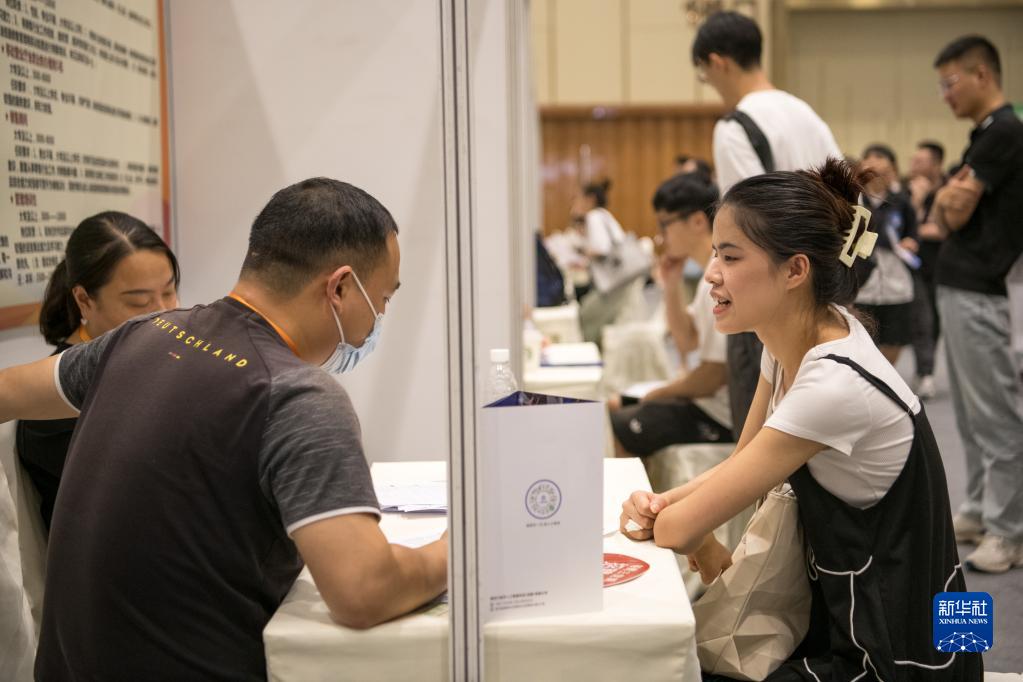7月2日,在成都世紀城新國際會展中心1號館,求職者在面試。