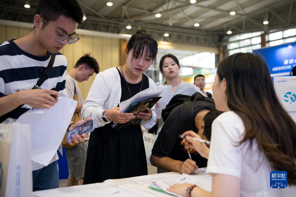7月2日,在成都世紀城新國際會展中心1號館,求職者在投遞簡歷。