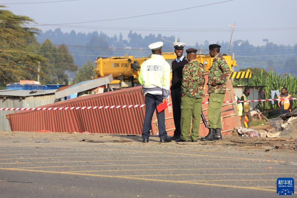 7月1日,警察在肯尼亞西北部凱里喬郡隆迪亞尼鎮附近的車禍現場工作。