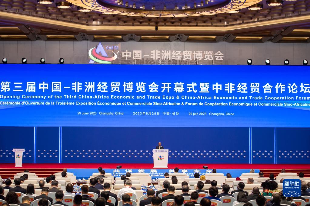 坦桑尼亞桑給巴爾總統姆維尼在第三屆中非經貿博覽會開幕式上發表講話(6月29日攝)。新華社記者 陳思汗 攝
