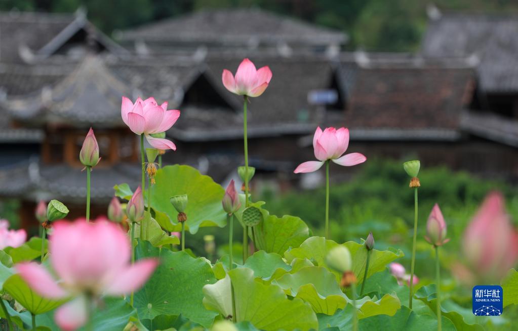 7月1日在貴州省黔東南苗族侗族自治州從江縣洛香鎮四聯村拍攝的荷花。