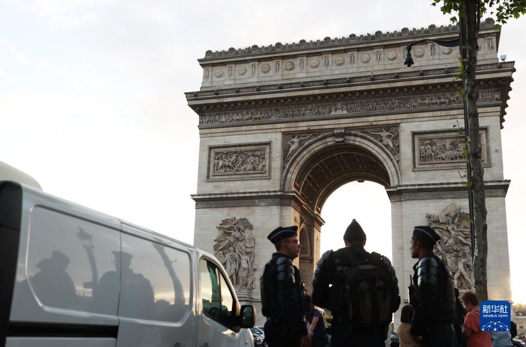 7月2日晚間,警察在法國巴黎凱旋門附近巡邏。
