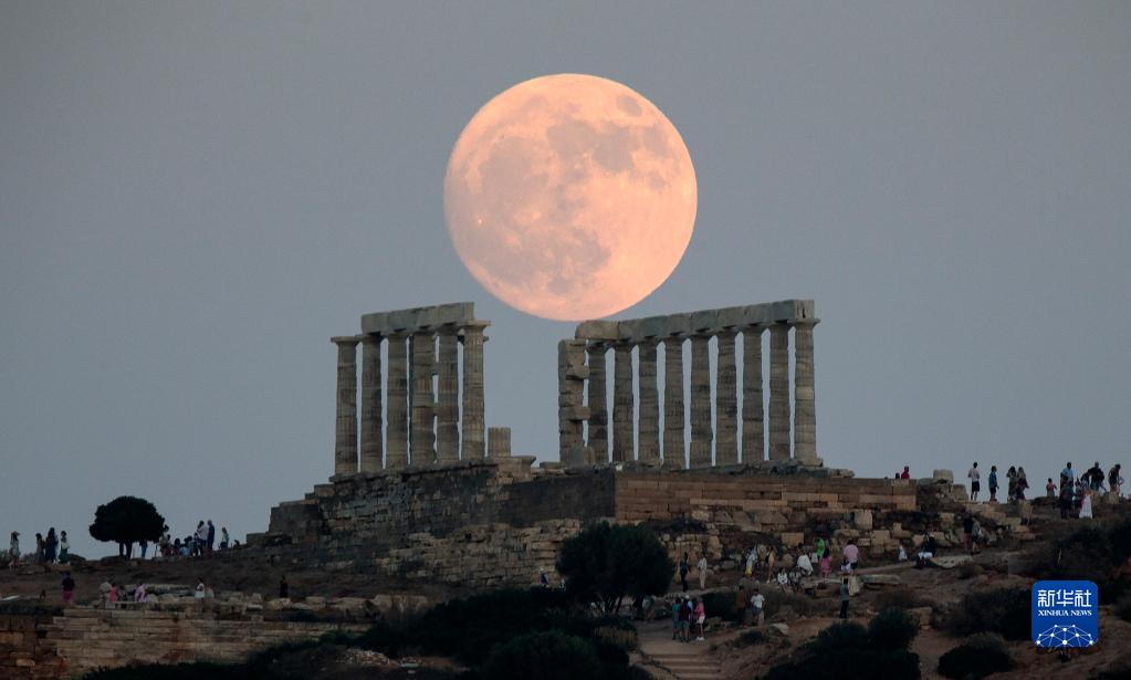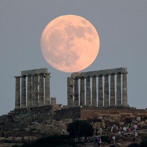 7月2日,一輪滿月出現在希臘蘇尼翁的海神廟遺址上空。