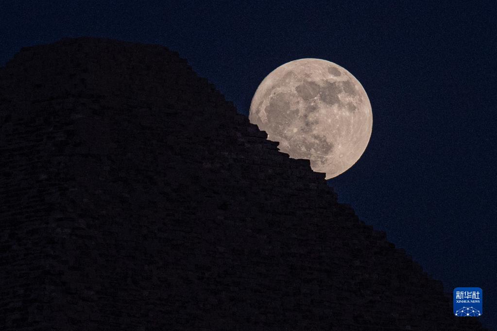這是7月2日在埃及吉薩胡夫大金字塔旁拍攝的滿月。