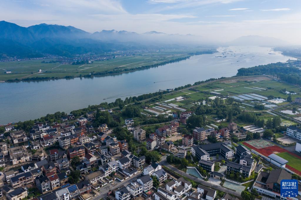 7月3日,空中俯瞰富春江畔的東梓關村(無人機照片)。
