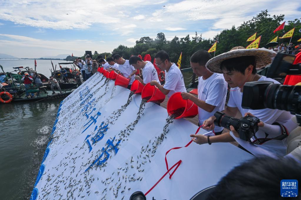 7月3日,富春江開漁節現場舉行了增殖放流活動。