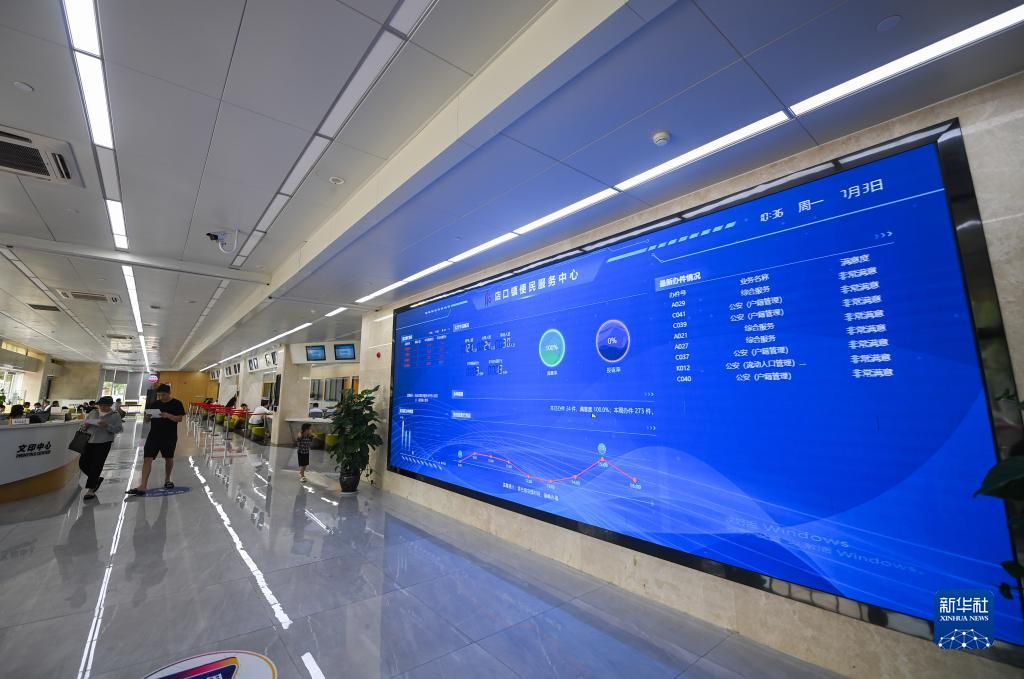7月3日,諸暨市店口鎮便民服務中心的數字大屏上實時顯示百姓辦理各類業務的情況。