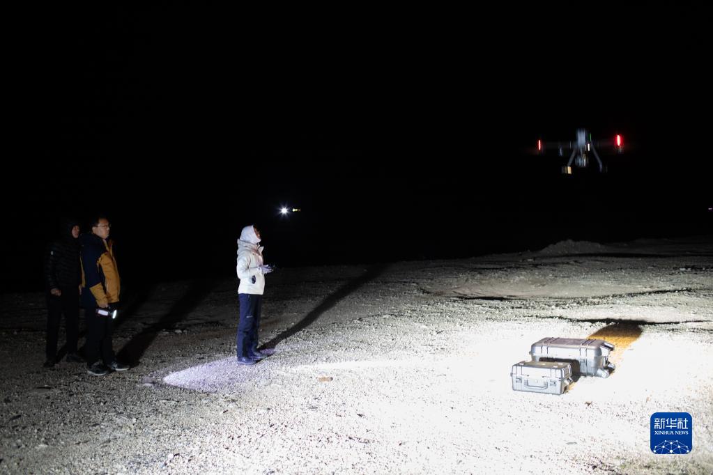 6月16日凌晨,連新明團隊在青藏公路楚瑪爾河大橋附近,使用無人機監測藏羚羊遷徙途中的夜宿地。