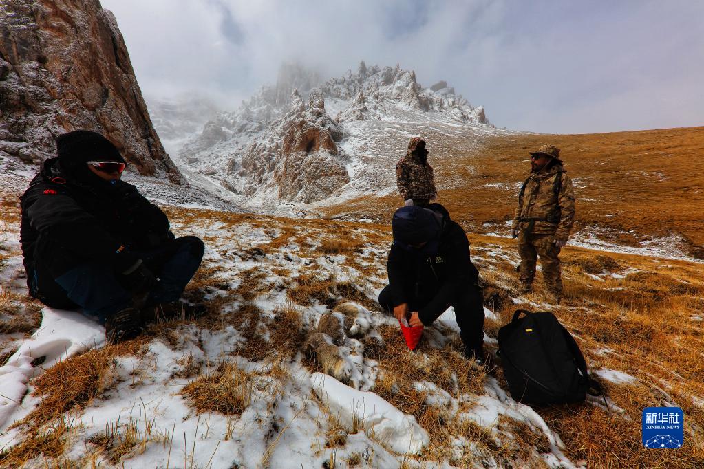 2019年3月,連新明(前右)和其他科研人員在三江源長江源通天河開展科學調查,采集樣本。