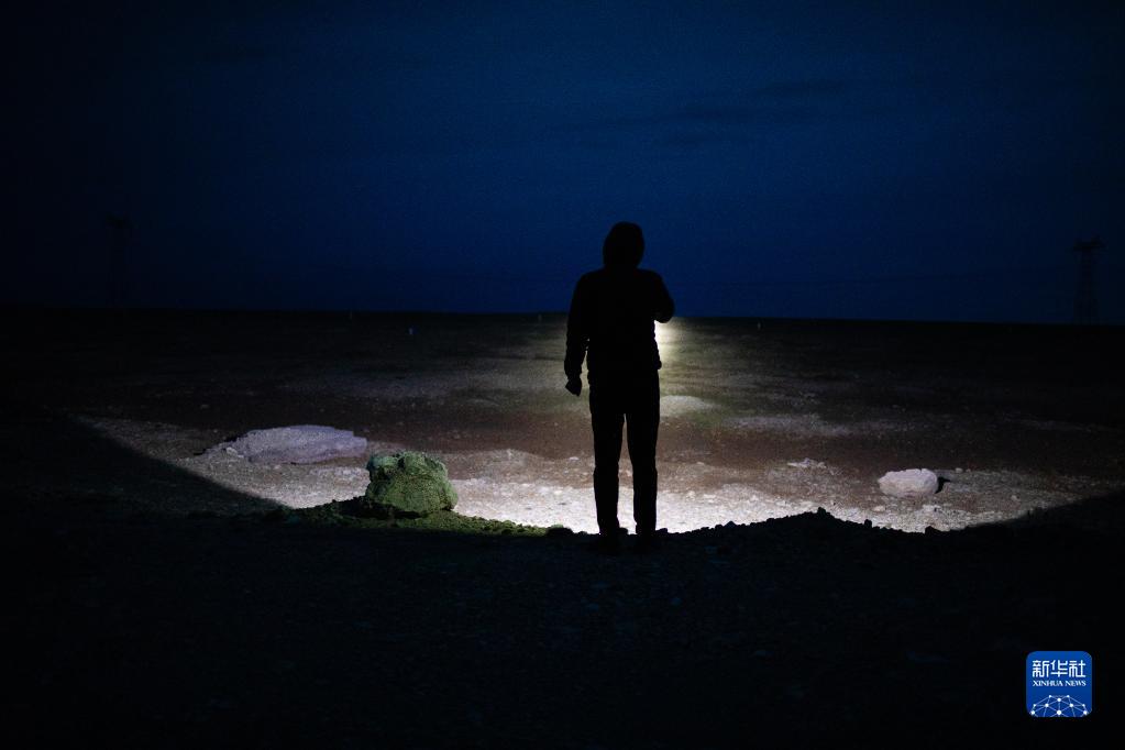 6月16日凌晨,連新明研究團隊在青藏公路楚瑪爾河大橋附近監測藏羚羊遷徙途中的夜宿地。