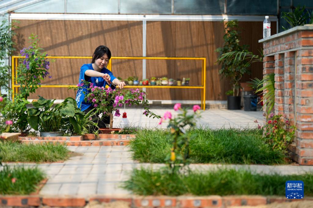 7月3日,河北省唐山市路北區一處家庭農場的工作人員在打理種植的花卉。
