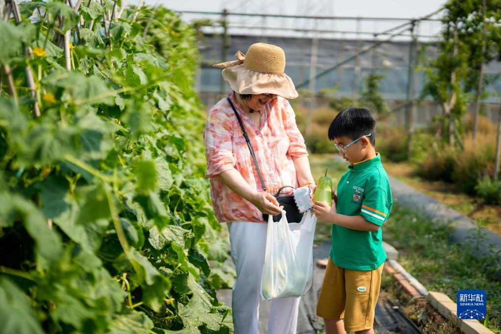 7月3日,家長帶著孩子在河北省唐山市路北區一處家庭農場內采摘。