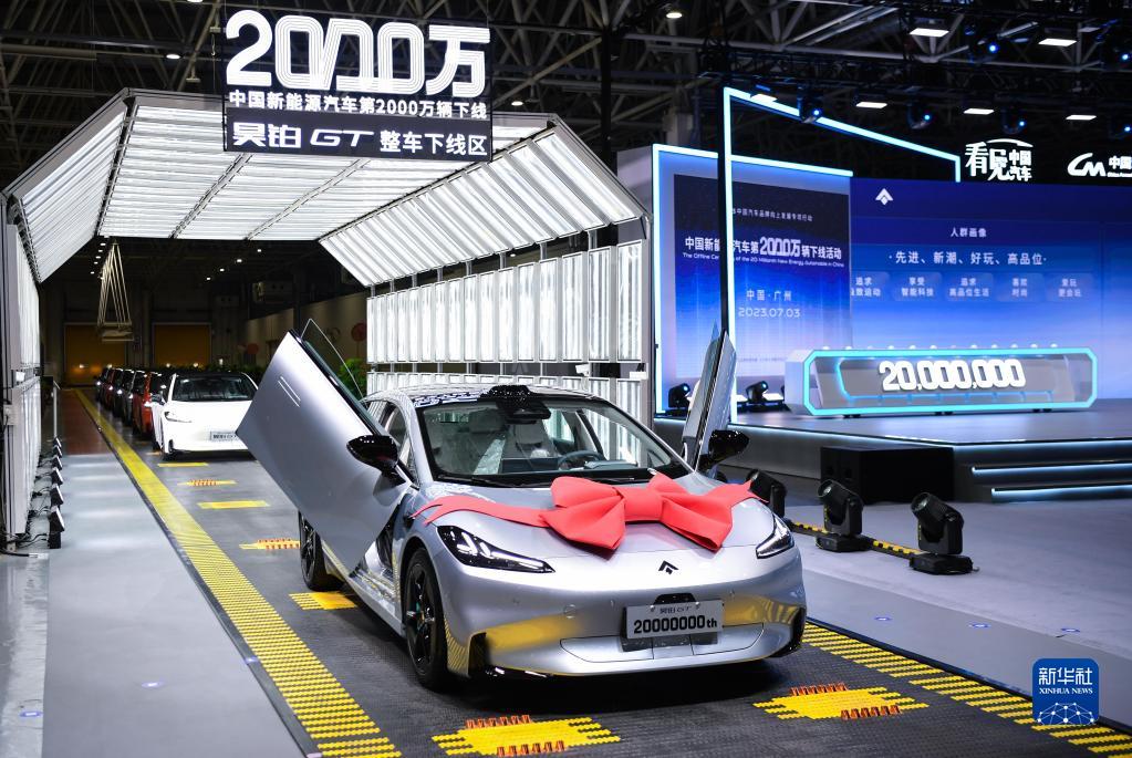 當日,中國新能源汽車第2000萬輛下線活動在廣州廣汽埃安第一智造中心舉行。