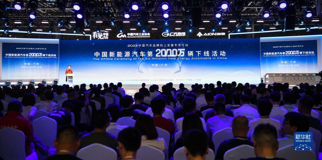 7月3日,中國新能源汽車第2000萬輛下線活動在廣州廣汽埃安第一智造中心舉行。