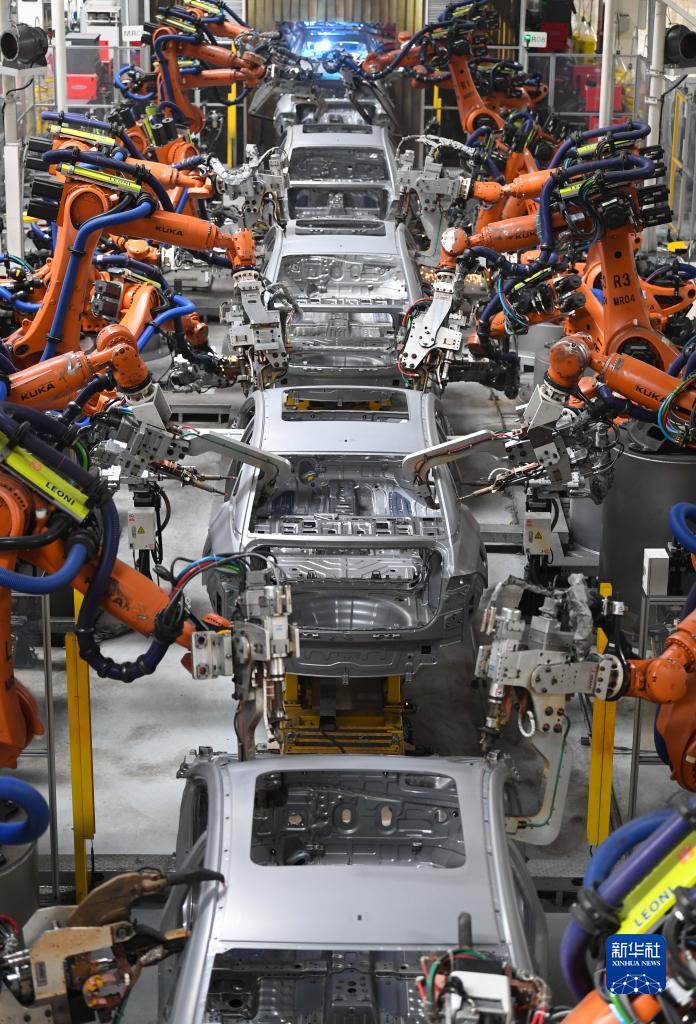 這是7月3日拍攝的廣州廣汽埃安第一智造中心新能源汽車焊裝車間。