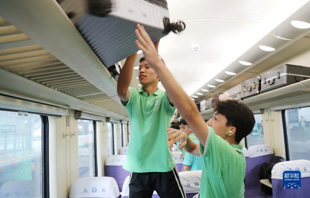 7月3日,“內高班”學生在蘇州火車站登上Z40次列車。