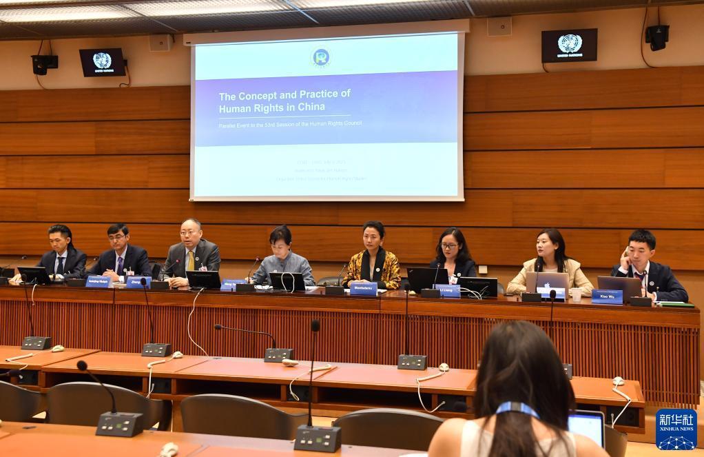 在聯合國人權理事會第53屆會議舉行之際,中國人權研究會3日在日內瓦萬國宮舉行“中國的人權理念與實踐”主題邊會,有關專家在會上就中國人權教育、新疆婦女權益、西藏活佛轉世制度與宗教信仰自由、中國式現代化與中國人權事業發展、所謂“強迫勞動”的涉疆謊言、新疆的語言文字保護與發展、西藏地方和祖國關系的歷史真相等話題介紹了情況。