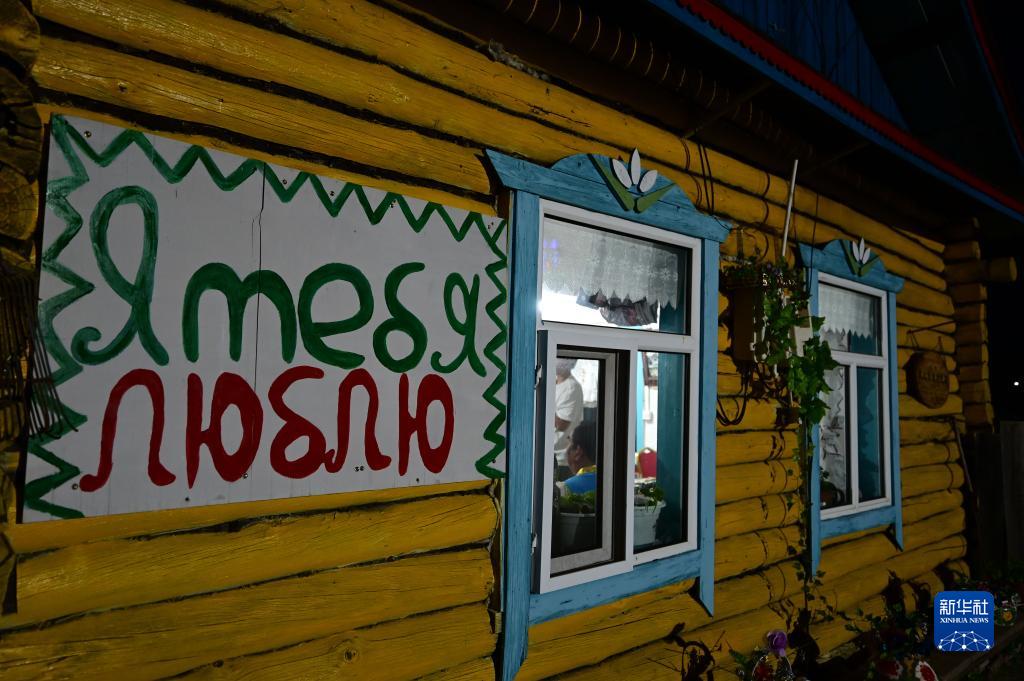 6月28日,游客在考占花家的俄式傳統民居內用餐。
