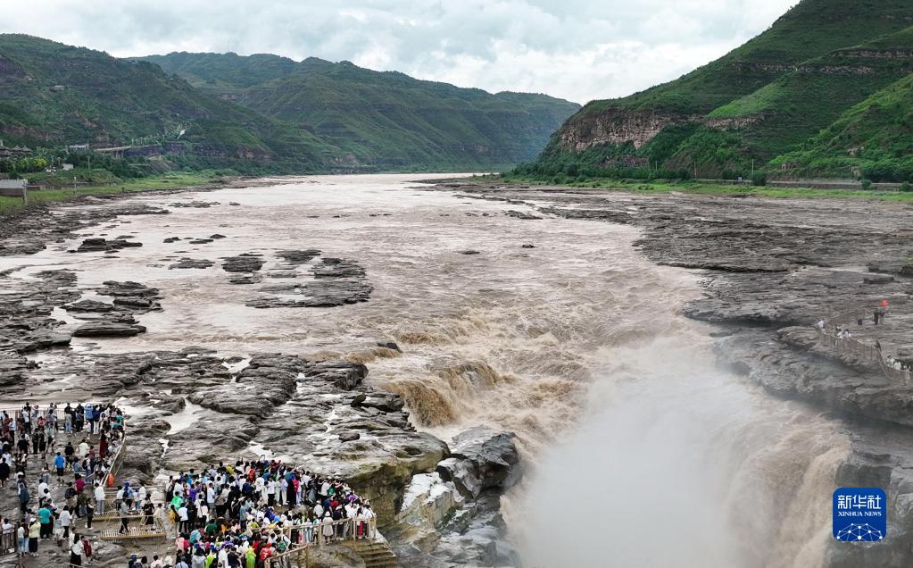 暑期,眾多游客來到位于陜西宜川縣和山西吉縣交界處的黃河壺口瀑布游覽,領略壺口瀑布美景。