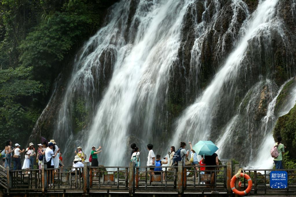 進入夏季,眾多游客來到貴州省黔南布依族苗族自治州荔波縣,暢游青山綠水,感受世界自然遺產地之美,樂享夏日時光。