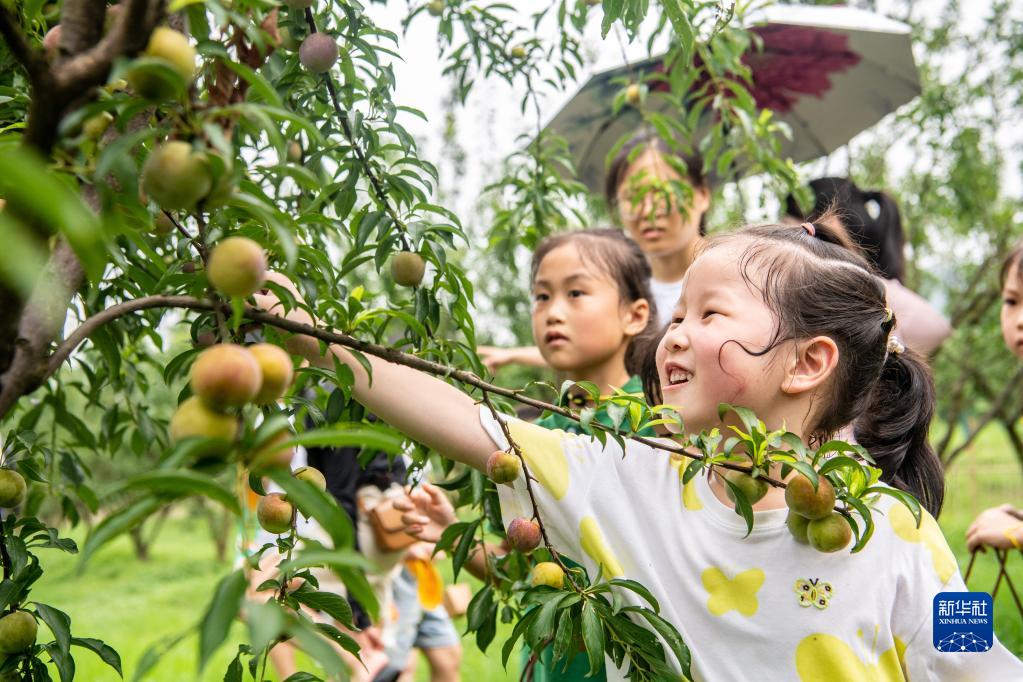 7月3日,孩子們在廣陽島的“生態研學課程”上采摘李子。