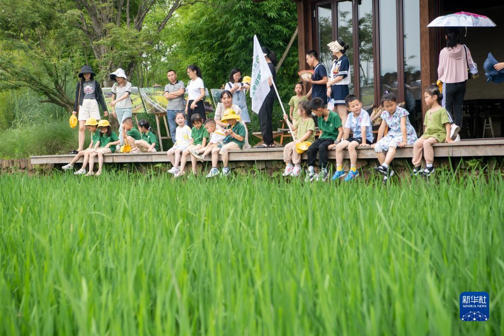 7月3日,家長和孩子們在“生態研學課程”上學習辨識農作物。