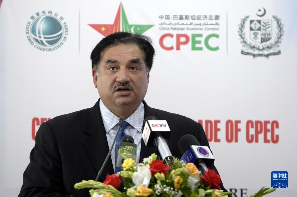 7月3日,在巴基斯坦拉合爾,巴基斯坦電力部長胡拉姆·達斯特吉爾汗出席“默蒂亞里-拉合爾(默拉)直流輸電項目慶祝中巴經濟走廊啟動十周年暨項目成功帶電運行1000天”儀式時致辭。