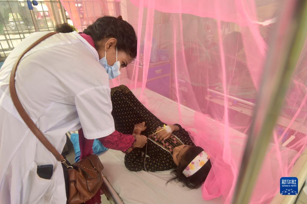 7月4日,在孟加拉國達卡一處醫院,一名醫生為登革熱患者治療。