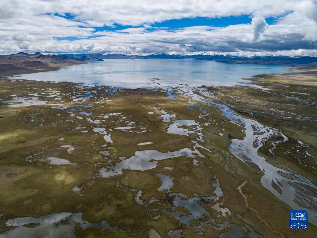 這是7月4日拍攝的普莫雍錯湖邊的濕地(無人機照片)。