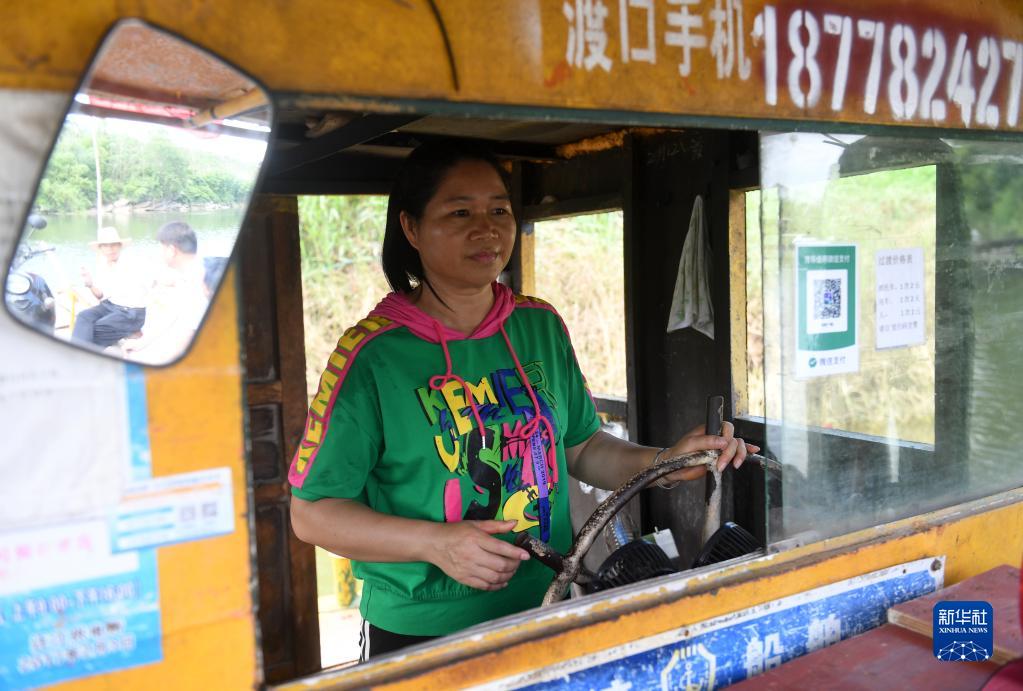 7月4日,在廣西來賓市興賓區遷江鎮大力村清水河上,李曼榮在駕駛渡船。