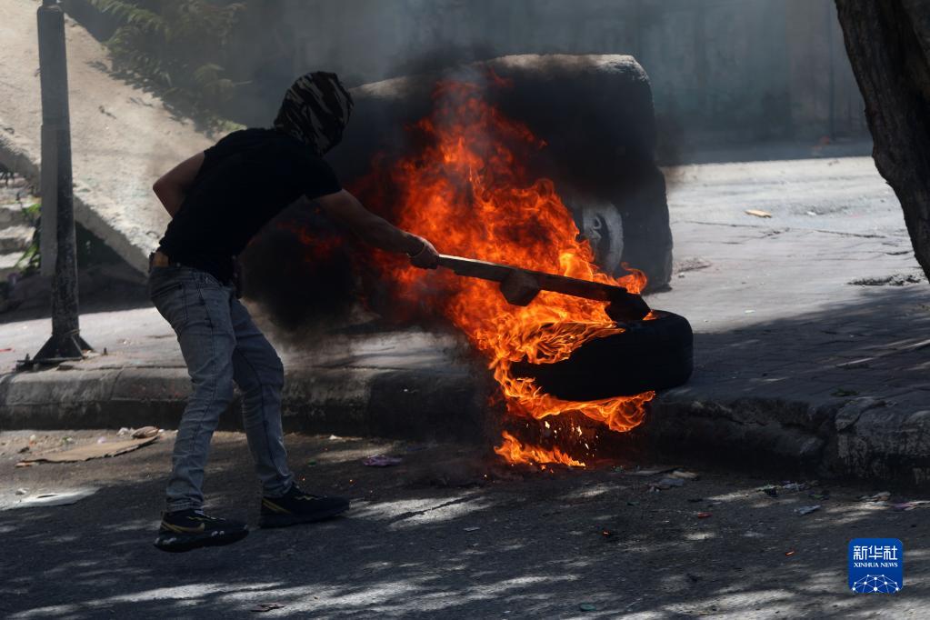 7月4日,在約旦河西岸城市希伯倫,巴勒斯坦抗議者在沖突中燃燒輪胎。