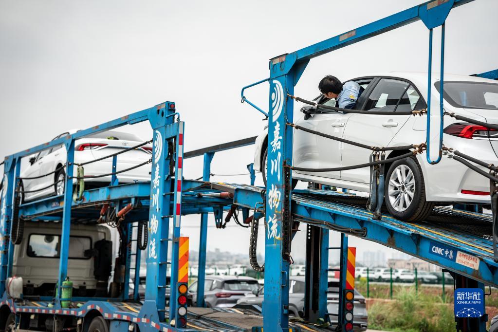 7月5日,工作人員在云南桃花村鐵路商品汽車物流基地裝運商品車。