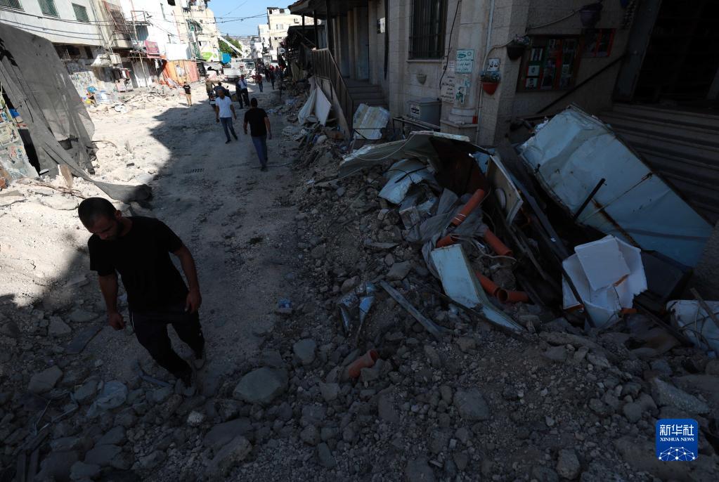 7月5日,人們走過約旦河西岸杰寧地區一處雜亂的街道。