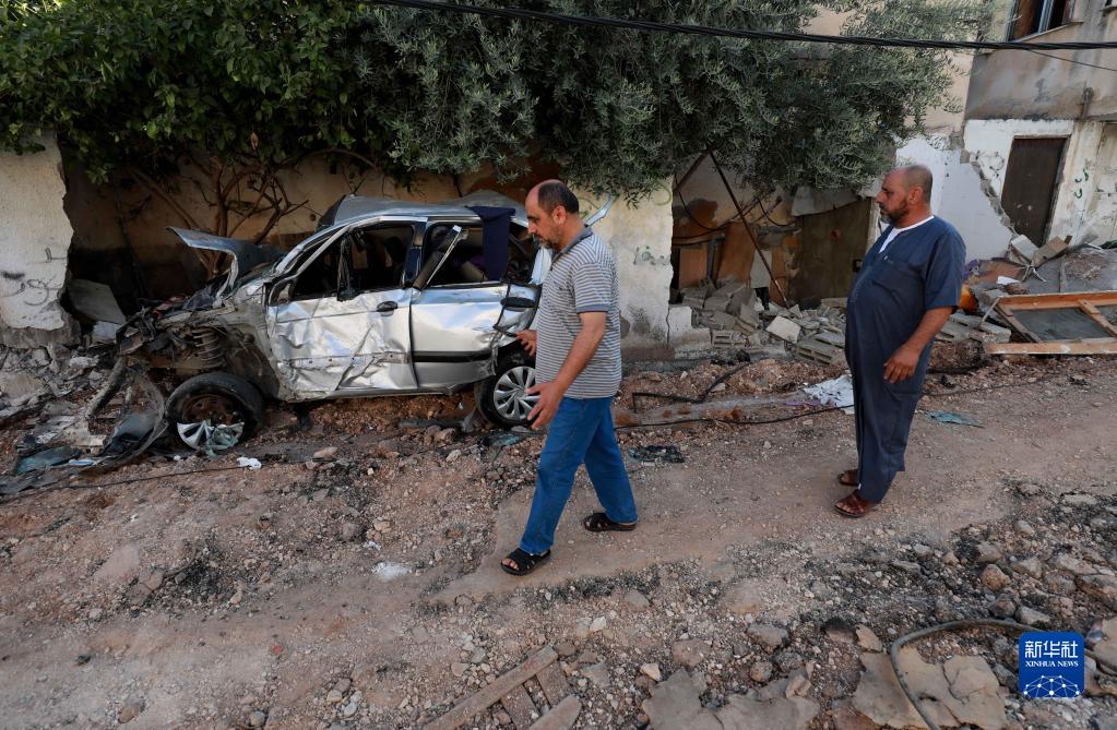 7月5日,人們走過約旦河西岸杰寧地區一輛受損的車輛。