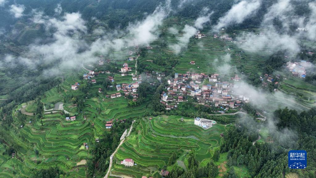7月5日在貴州省錦屏縣固本鄉東莊村拍攝的雨后景色(無人機照片)。