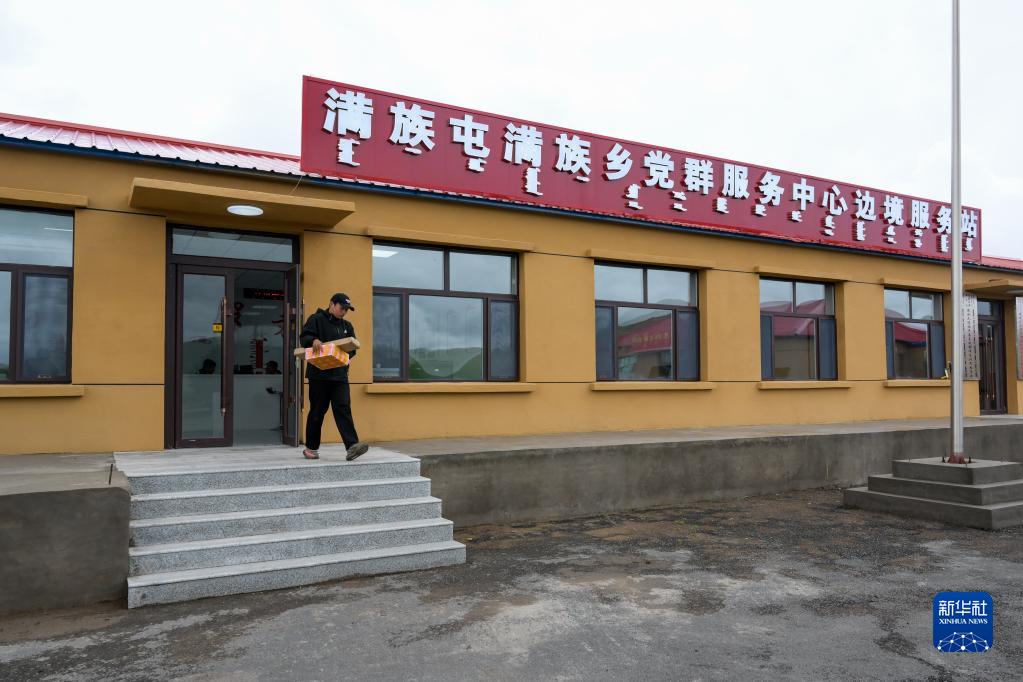 7月5日,在內蒙古興安盟科爾沁右翼前旗滿族屯滿族鄉黨群服務中心邊境服務站,牧民取完快遞后離開服務站。