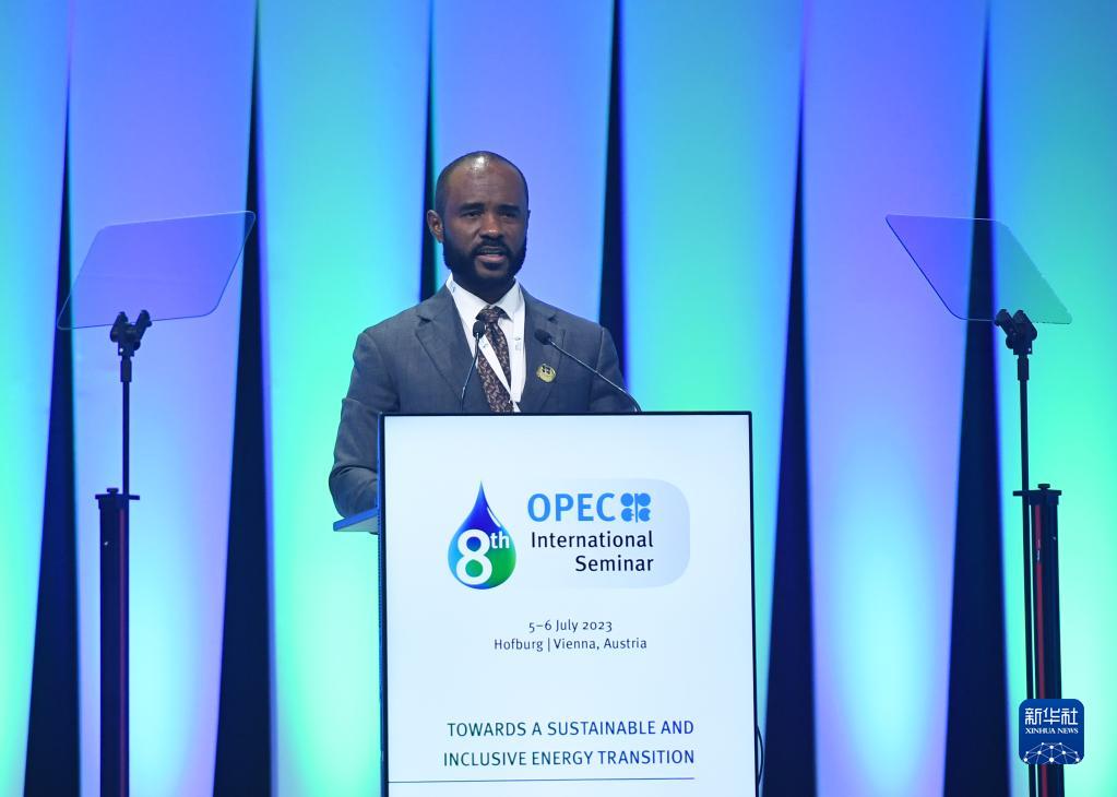 7月5日,在奧地利維也納,歐佩克輪值主席、赤道幾內亞礦產與石化部長安東尼奧·奧布羅·翁多在第八屆歐佩克國際研討會上致辭。
