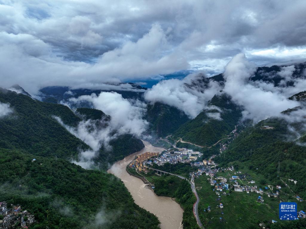 俯瞰云霧間的219國道云南怒江美麗公路段(7月4日攝,無人機照片)。