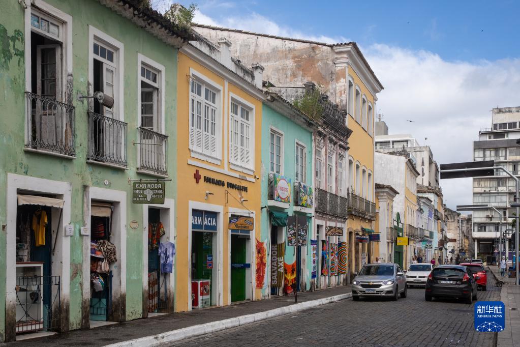 這是7月5日在巴西巴伊亞州薩爾瓦多佩洛里尼奧區拍攝的街景。該區擁有歐洲殖民統治時期修建的大量建筑,其中不少體現了葡萄牙建筑風格。