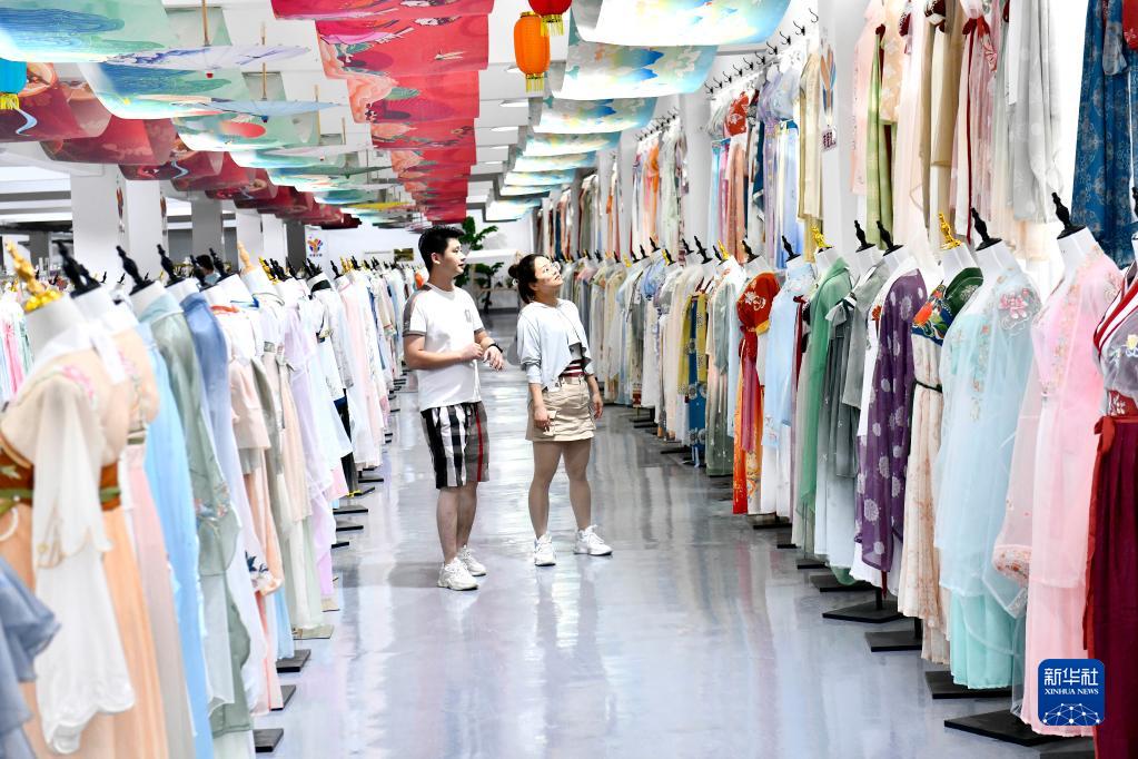 山東省曹縣依托電商資源優勢,聚力發展漢服產業,形成了從印染、剪裁、繡花、打版、成衣全產業鏈條。目前,曹縣共有漢服上下游企業2100多家,并在上海、西安、洛陽等地設有漢服基地,展銷推介曹縣漢服。今年1-6月,曹縣漢服營銷收入近40億元,漢服產業不僅成為當地群眾增收、鄉村振興的新引擎,還吸引了近兩萬名大學生返鄉就業、創業。
