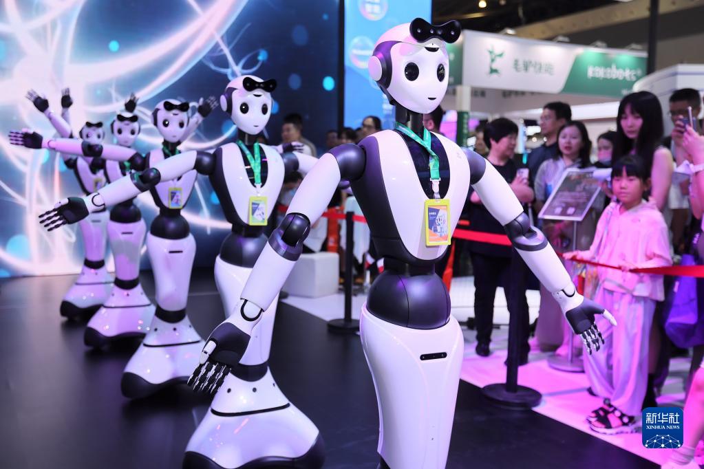 7月6日,在達闥展位,人形機器人進行“千手觀音”表演。