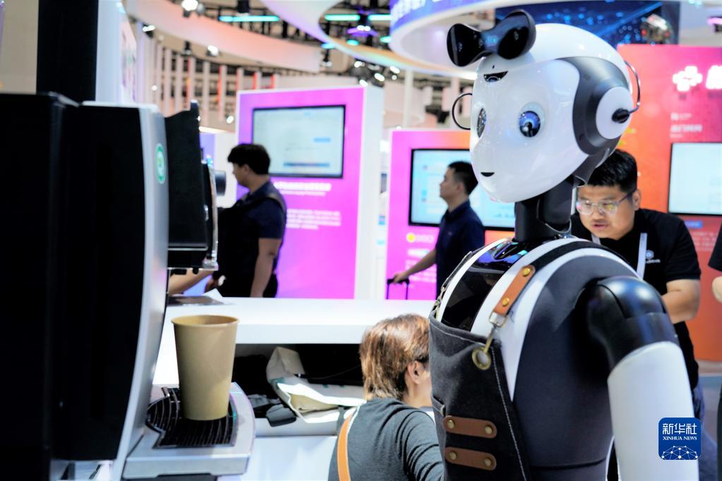 7月6日,達闥智能服務機器人在展會現場制作咖啡。