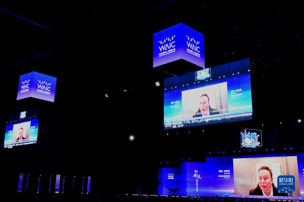 7月6日,特斯拉首席執行官馬斯克通過視頻參加開幕式。