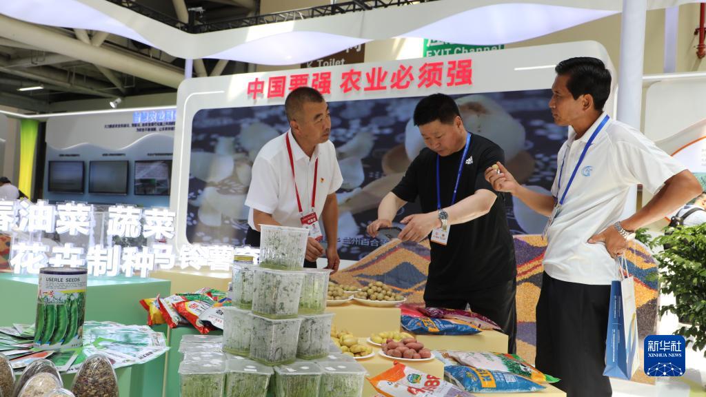 7月6日,在第二十九屆中國蘭州投資貿易洽談會現代農業館,參會者在了解展品情況。