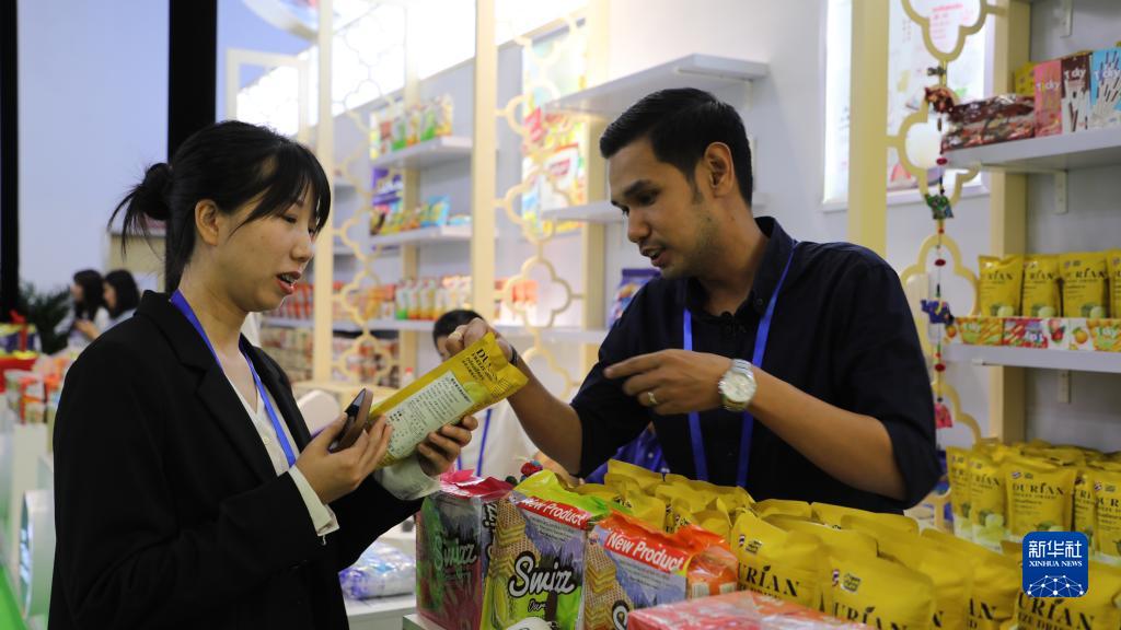 7月6日,第二十九屆中國蘭州投資貿易洽談會的一家泰國參展商向參會者推介產品。